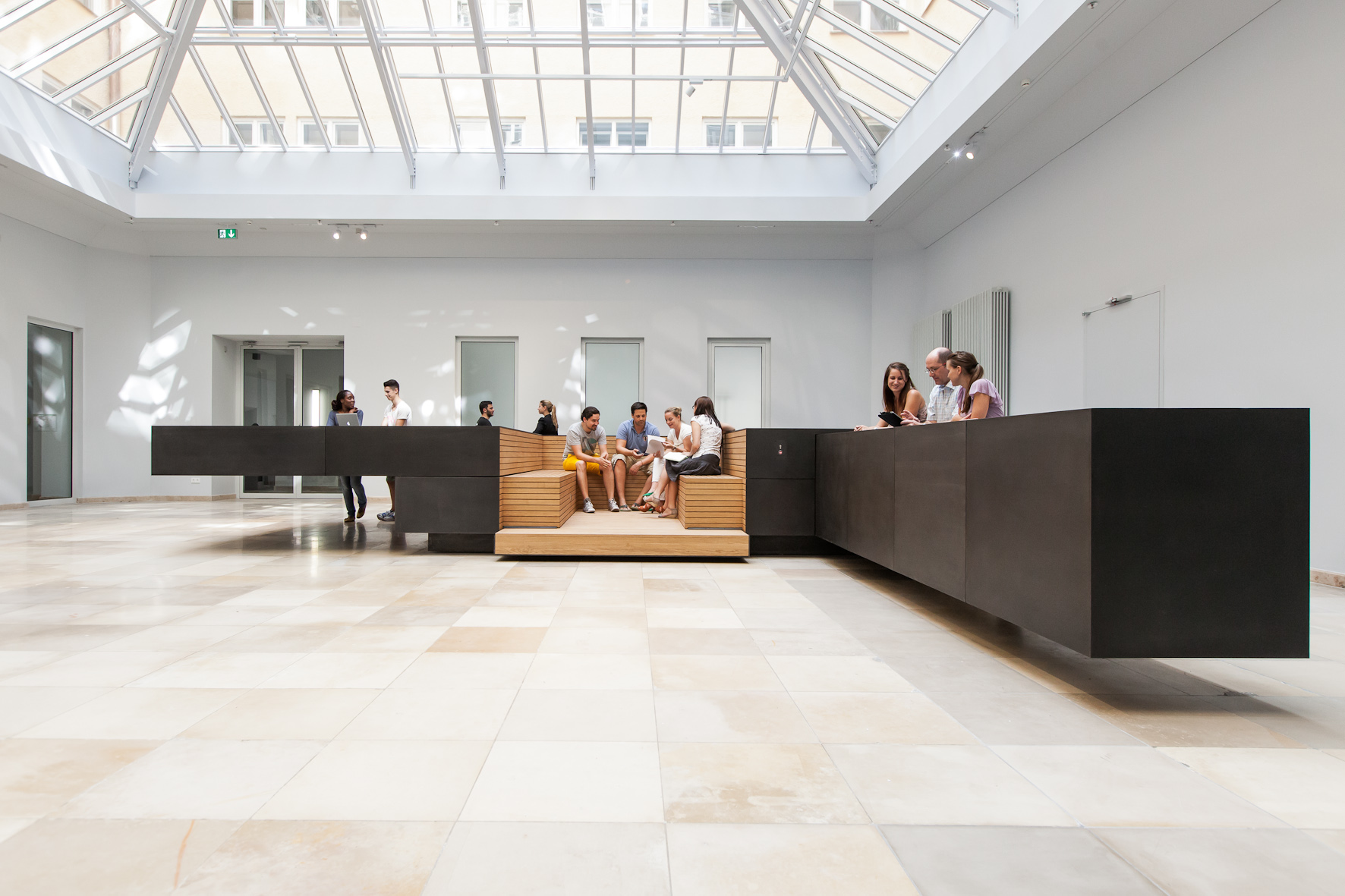 Die ehemalige LKW-Wartungshalle des Postfuhramtes zeichnet sich durch eine markante Konstruktion und hohe räumliche Qualität aus. Den Charakter des Raumes zu erhalten, war daher ein Grundmotiv des Entwurfes.